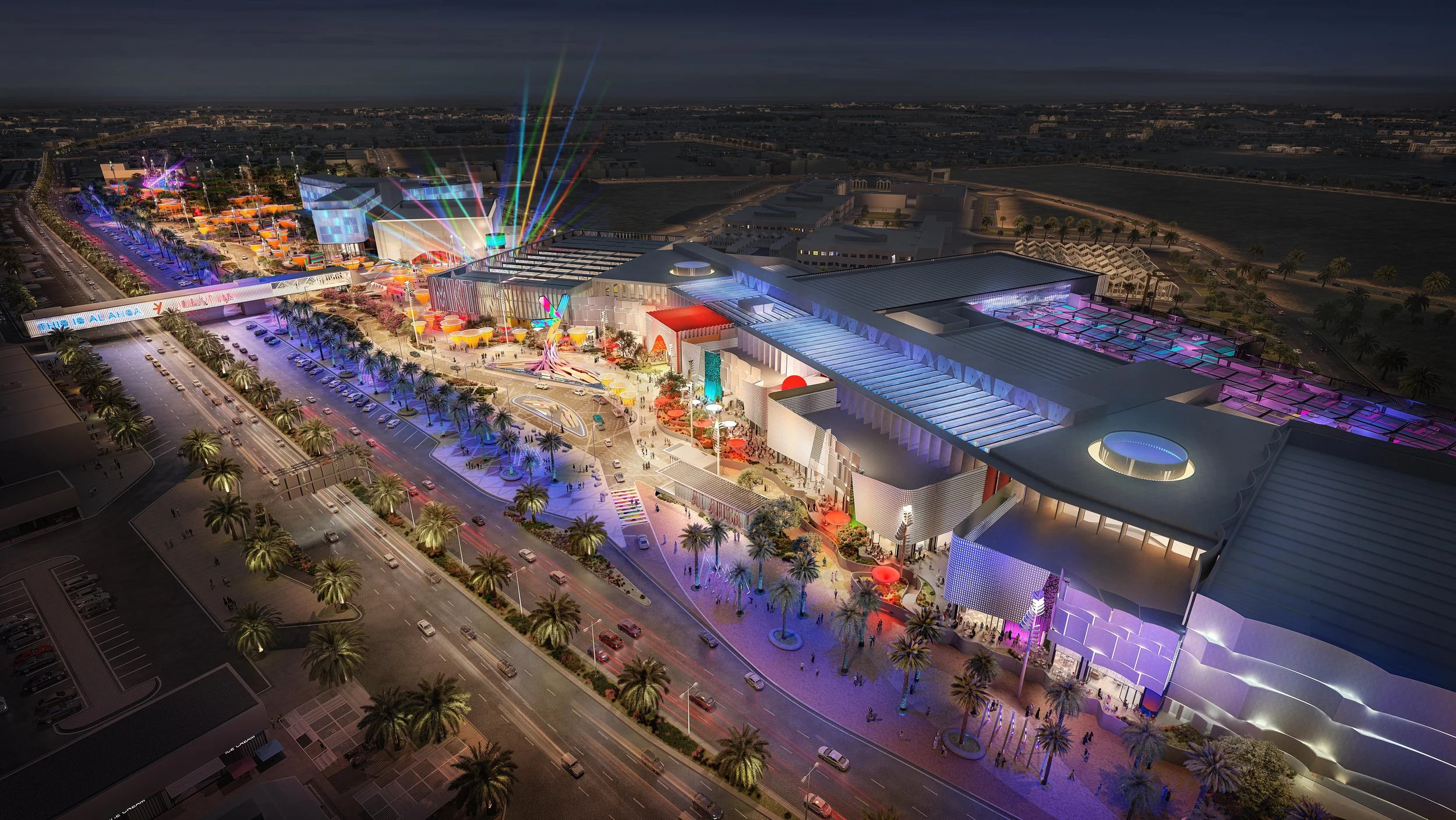 The complex is situated in the Al Khuzama area of Al Kharj, southeast of Riyadh and covers approximately 160,000 square meters, making it a major regional entertainment hub.